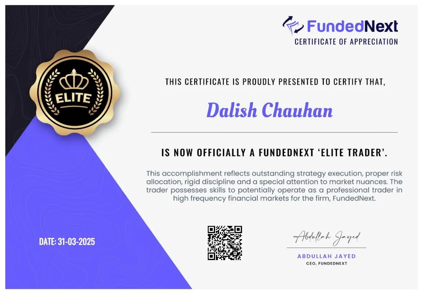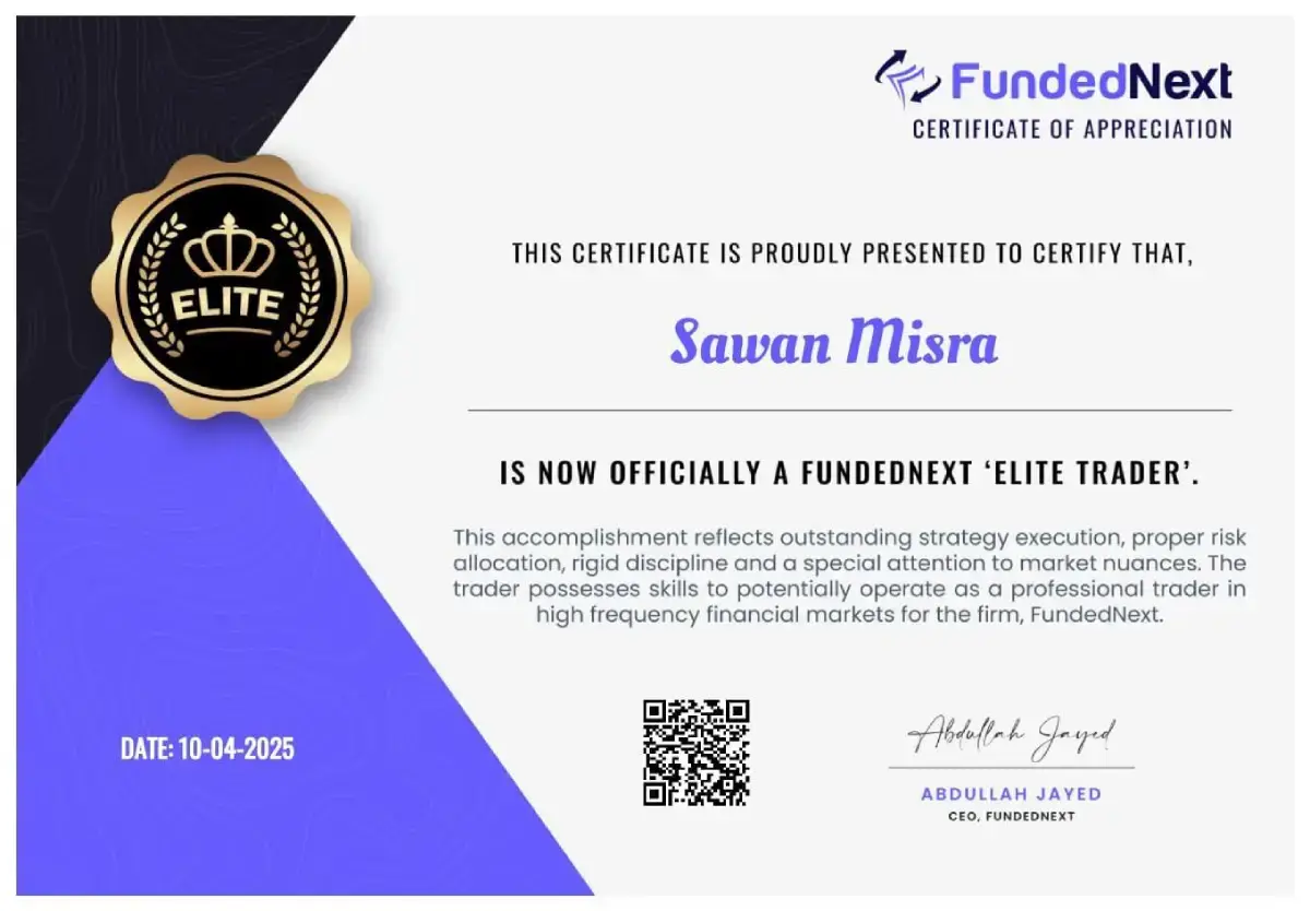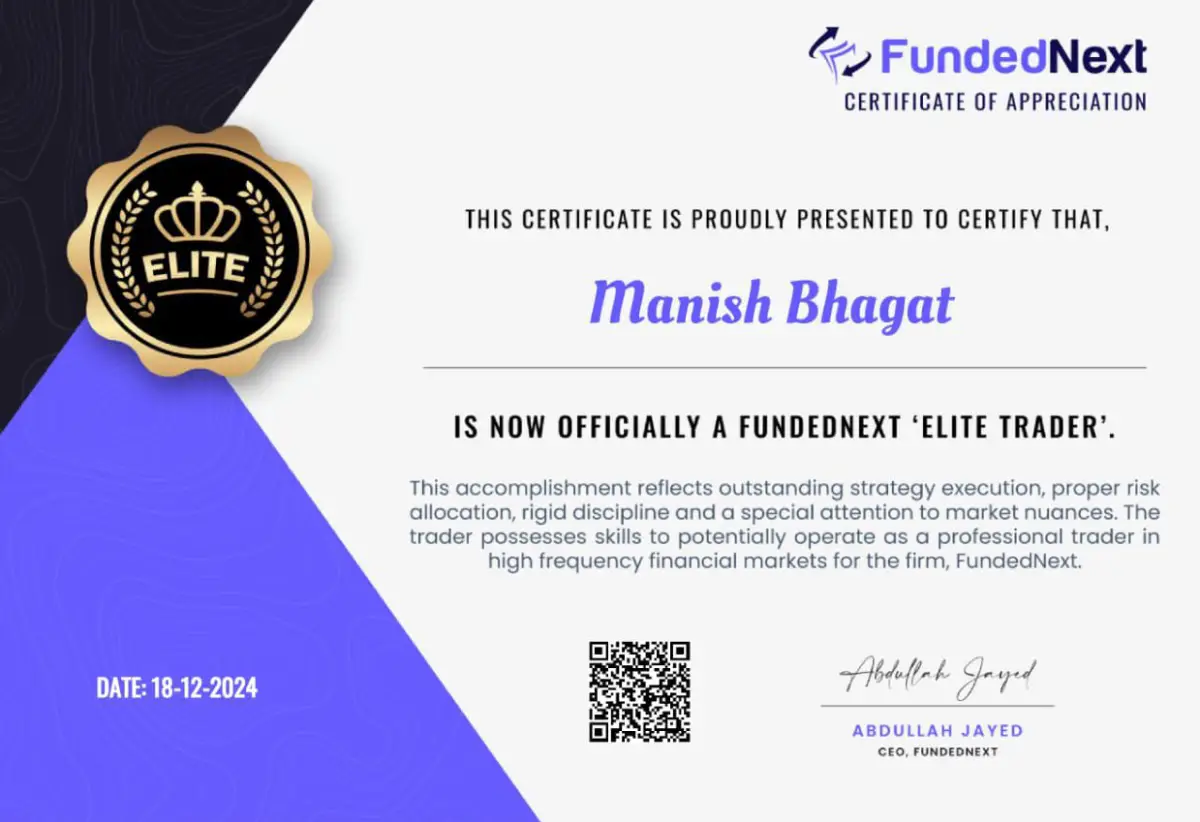 Congratulations to Chetan Nikam on achieving the prestigious certificate of “High Strikes Funded Trader”