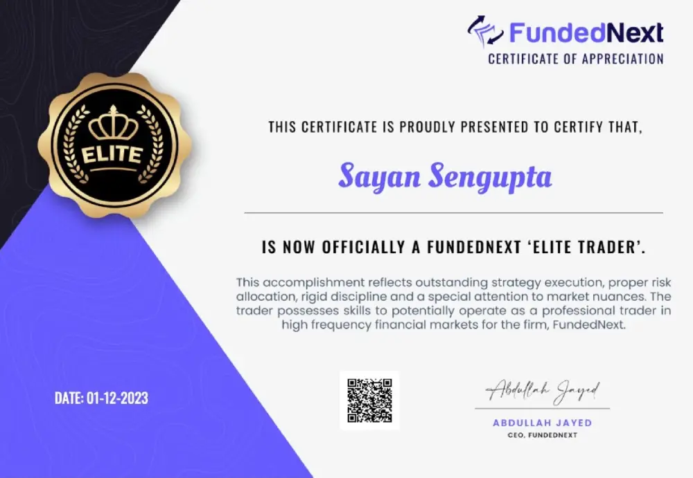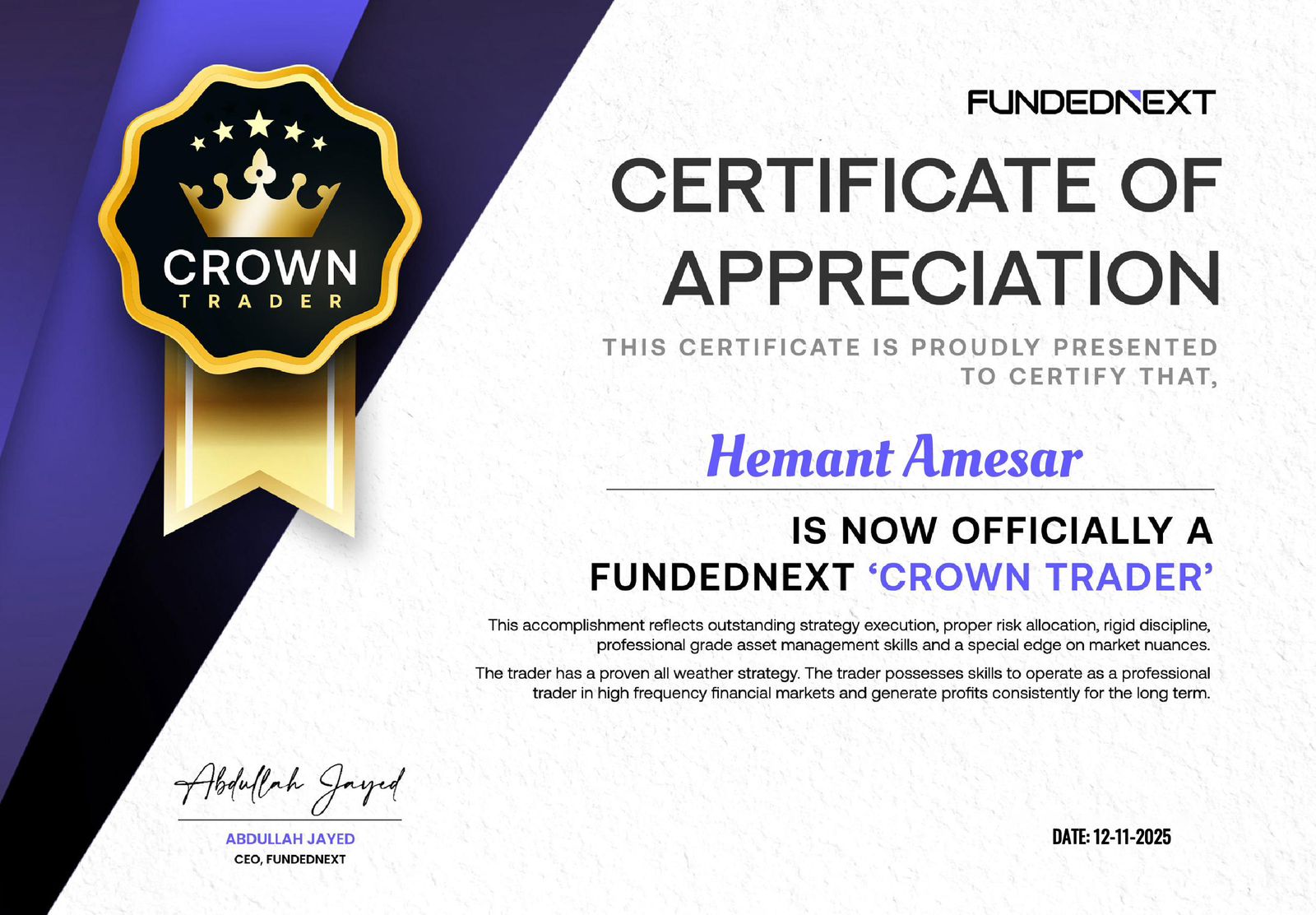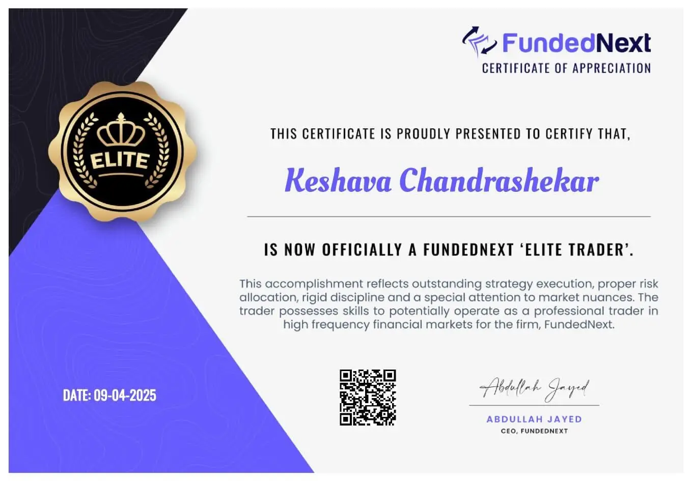 Congratulations to Chetan Nikam on achieving the prestigious certificate of “High Strikes Funded Trader”