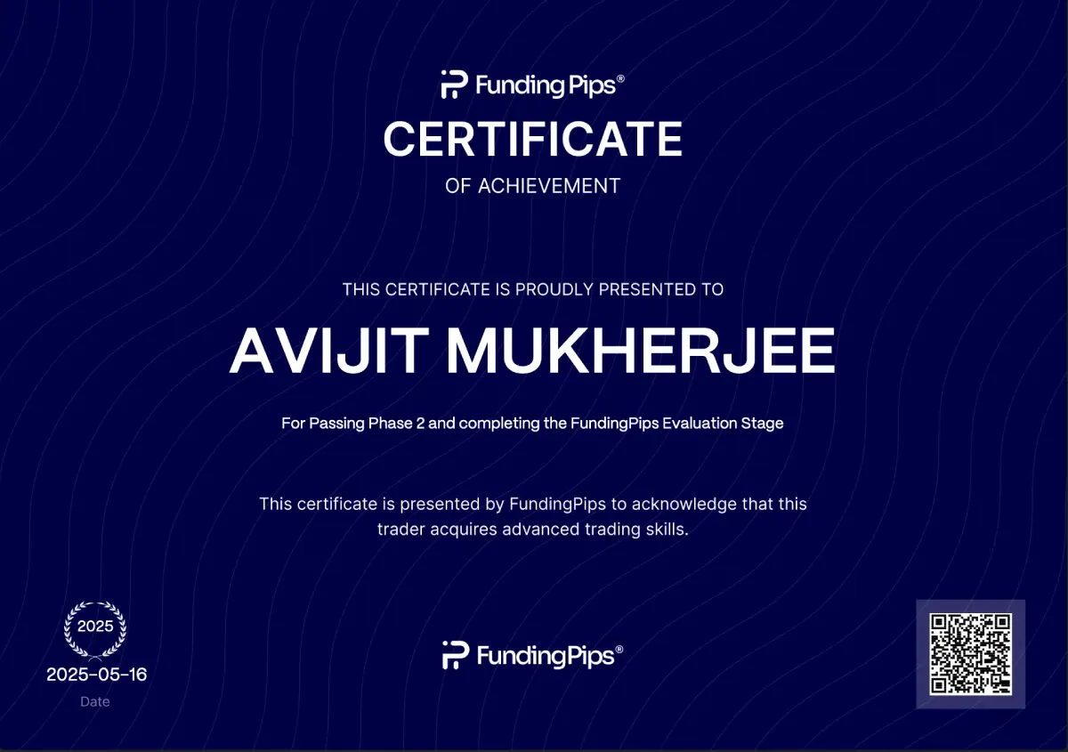 Congratulations Prashant Patil for Mastering Trading Skills and Excelling in Phase 2 with the ‘Funding Pips’ Certificate!