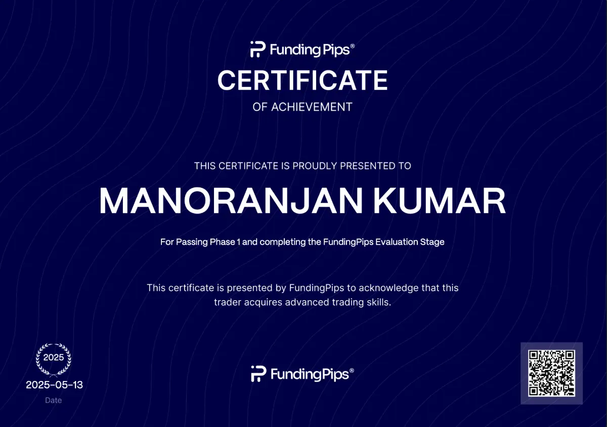 Congratulations Sunil Kumar Singh for Mastering Trading Skills and Excelling in Phase 2 with the ‘Funding Pips’ Certificate!