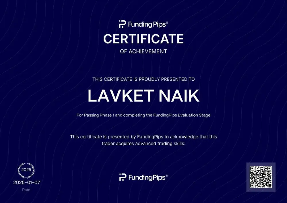 Congratulations Parth Patel for Mastering Trading Skills and Excelling in Phase 1 with the ‘Funding Pips’ Certificate!
