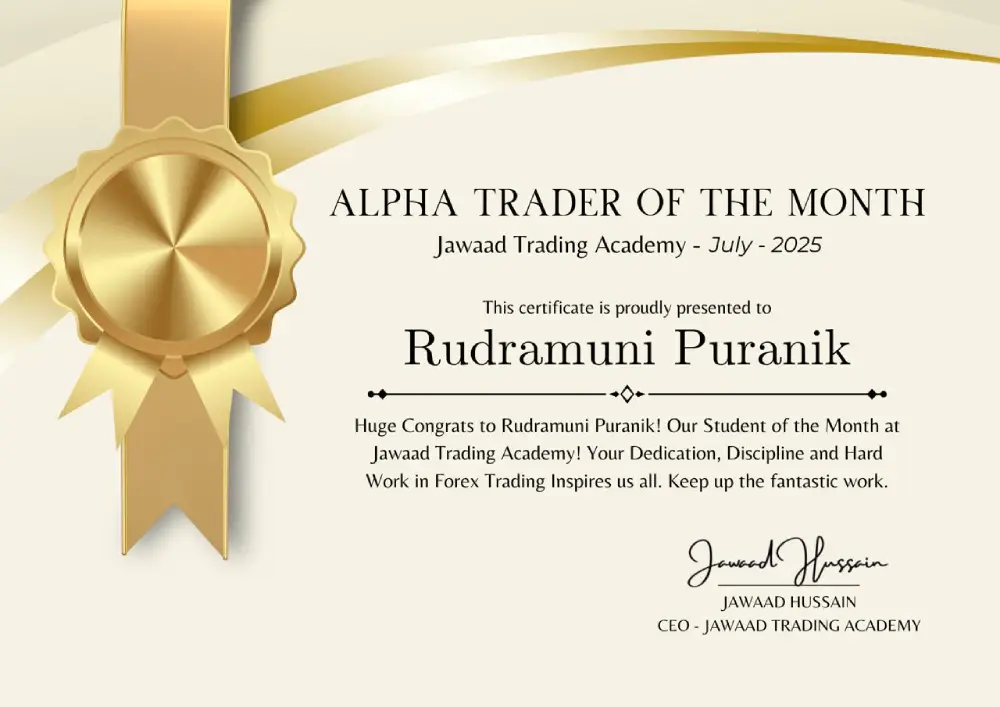 Congratulations Soumyadip Mishra! Excelling in trading objectives with a profitable system at Jawaad Trading Academy!