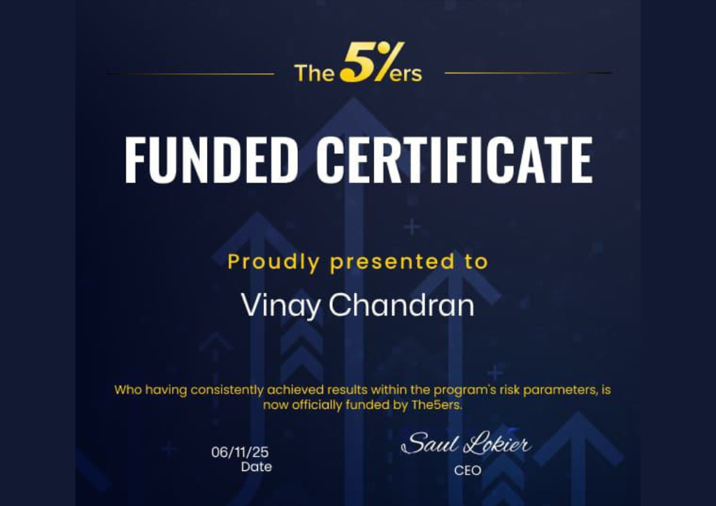 A Big Congratulations to Kabilan C P! We are thrilled to announce that our student, Kabilan, has achieved an incredible milestone by clearing a funded account with The 5%ers!